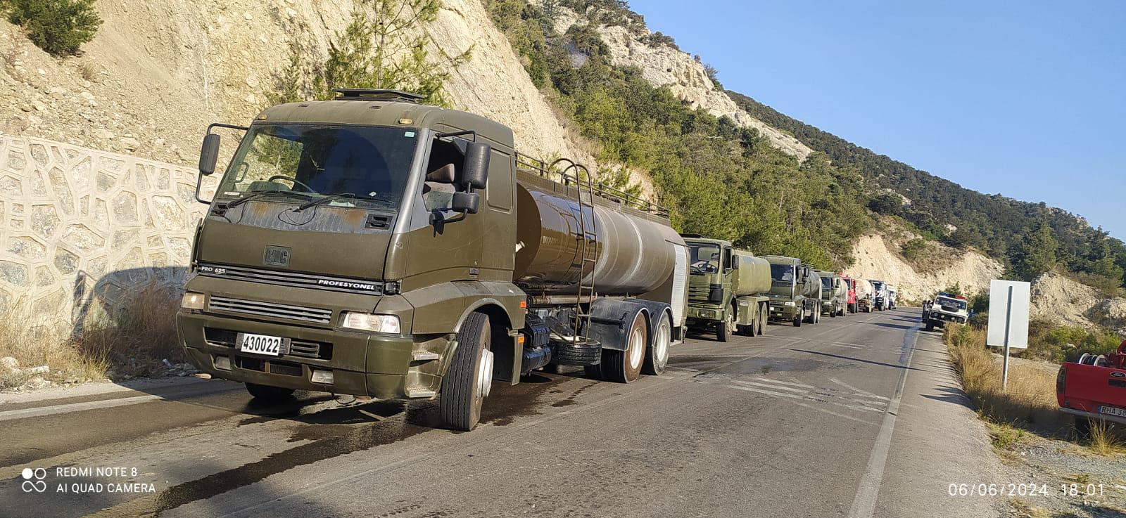 Yer ekibinin koordinatörlüğünü 14’üncü Zırhlı Tugay Komutanı’nın yaptığı yangın söndürme çalışmalarına; GKK’dan 4 Su Tankeri ve 1 Dozer, 14’üncü Zırhlı Tugay Komutanlığı’ndan 1 İtfaiye Aracı ve 2 Su Tankeri, 28’inci Mekanize Piyade Tümen Komutanlığı’ndan 1 Dozer ve 1 Su Tankeri, Kıbrıs Türk Kuvvetleri Alay Komutanlığı’ndan 2 Su Tankeri ve 3 YAMA, Topçu Alay Komutanlığı’ndan 1 YAMA, Kıbrıs Türk Barış Kuvvetleri Karargah Grup Komutanlığı’ndan 1 su tankeri, SSTB’ndan 3 Arazöz, 1 Su Tankeri, 6 YİM (Yangına İlk Müdahale Aracı), Orman Genel Müdürlüğü’nden 3 Arazöz, İtfaiye Genel Müdürlüğü’nden 4 Arazöz ve 2 Su Tankeri Sivil firmalardan da 3 Dozer katıldı.