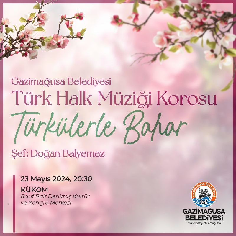 Gazimağusa Belediyesi (GMB) Türk Halk Müziği Korosu, perşembe günü “Türkülerle Bahar” konseri veriyor.