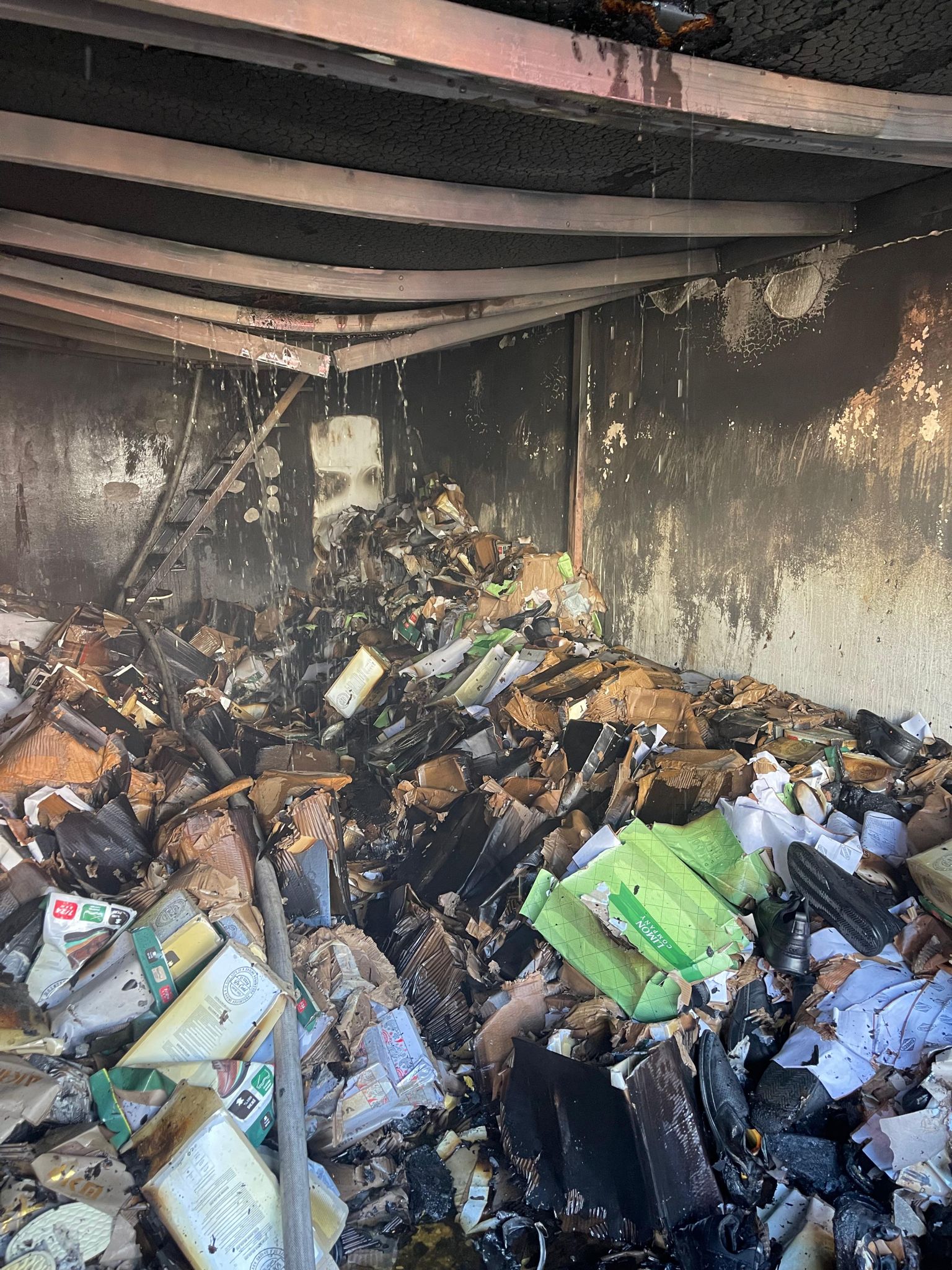 İtfaiye ekipleri tarafından söndürülen yangın sonucu, depo içerisinde bulunan 150 adet seyyar çamaşır askı teli, 50 adet ütü masası, 1500 çift ayakkabı, klima iç ve dış ünitesi, sende katını oluşturan profil demirler ve ahşap kaplaması, dükkanın alüminyum kapı ve pencere camları yanarak, zarar gördü.