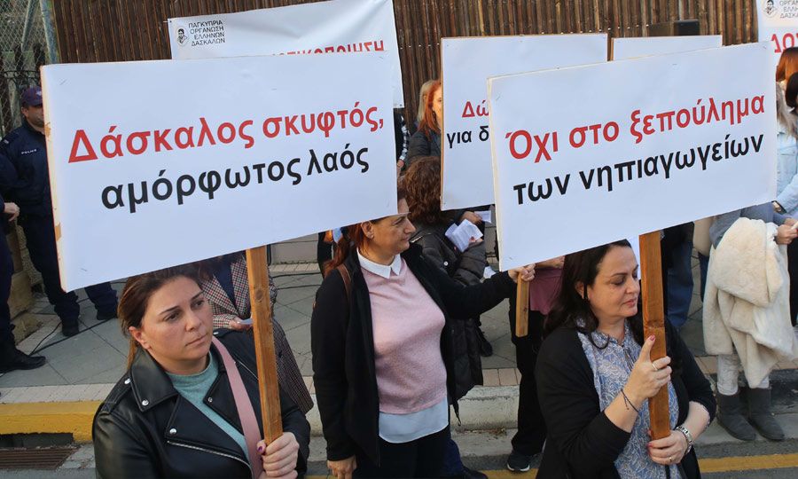 Güney Kıbrıs’ta ilkokul öğretmenleri ile velilerin dün, zorunlu okul öncesi eğitimiyle ilgili talepleri için Başkanlık Sarayı önünde eylem yaptıkları bildirildi.