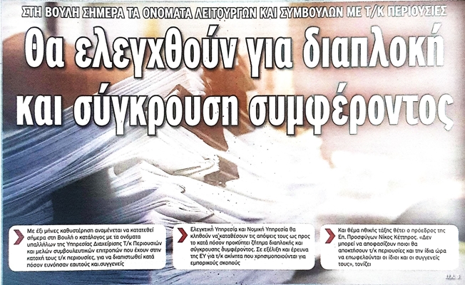 Politis gazetesi ise konuya ilişkin haberini “Kıbrıs Türk Taşınmazına Sahip Memur ve Danışmanların İsimleri Bugün Mecliste – Müdahil Olup Olmadıkları ve Menfaat Sağlayıp Sağlamadıkları Araştırılacak” başlıkları altında okuyucusuna aktardı.