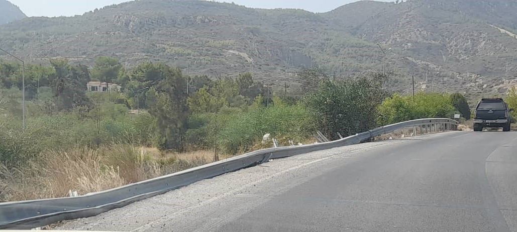 Girne’deki alt geçitli çemberdeki bariyerlerin durumuna dikkat çeken Dizdarlı, “Fotoğrafta görülen yer, Girne Lefkoşa istikametinde gidilirken alt geçitli çembere girmezden 5-10 metre gerisidir. Haftalardır bu bariyerler çökmüş durumdadır. Belli ki biri çarpmış, ezmiş, kırmış. Ezene kırana parası ödettirildi mi bilmiyorum ama bariyer, bu hâliyle her an bir kaza bir bela yaratma potansiyeline sahip tamiri bekliyor.