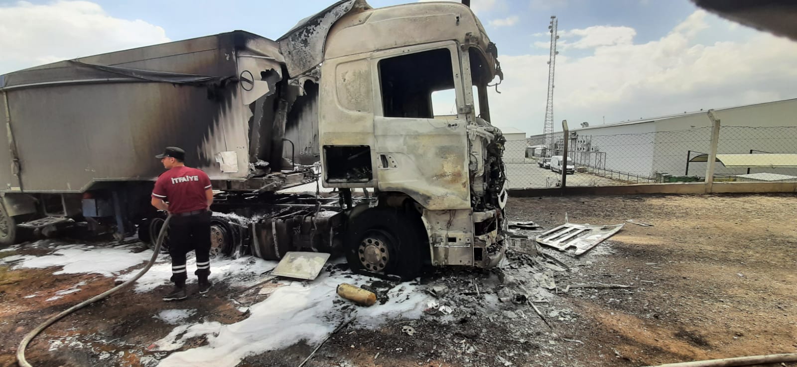 İtfaiye Ekipleri tarafından söndürülen yangın sonucu kamyon tamamen yanarak kullanılmaz hale geldi.