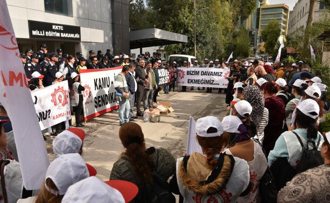 Kamu İşçileri Sendikası (Kamu-İş), okullarda hademe olarak görev yapan üyelerinin haksızlığa uğradığı gerekçesiyle, üyeleri ile birlikte Milli Eğitim Bakanlığı önüne yürüdü. Bakanlık önünde ateş yakılarak tencerede taş kaynatılan eylemde konuşan Kamu-İş Başkanı Ahmet Serdaroğlu, yasaların özel sektör de dâhil tüm emekçiler için olduğunu vurguladı.