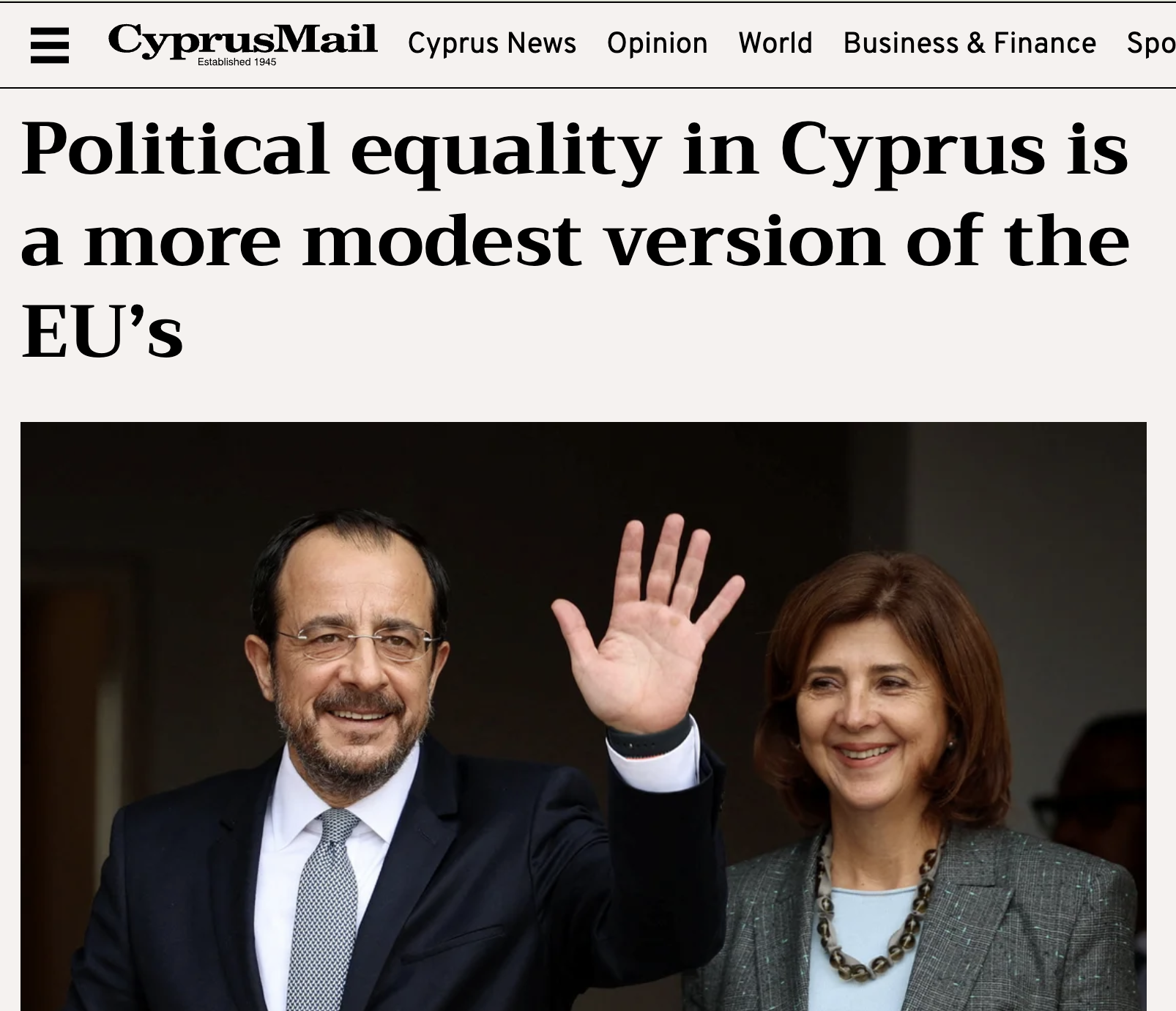 (BU MAKALE CYRPUS MAIL GAZETESİNİN 1 ŞUBAT 2026 TARİHLİ WEB SİTESİNDEN ALINMIŞTIR – https://cyprus-mail.com/2026/02/01/political-equality-in-cyprus-is-a-more-modest-version-of-the-eus)