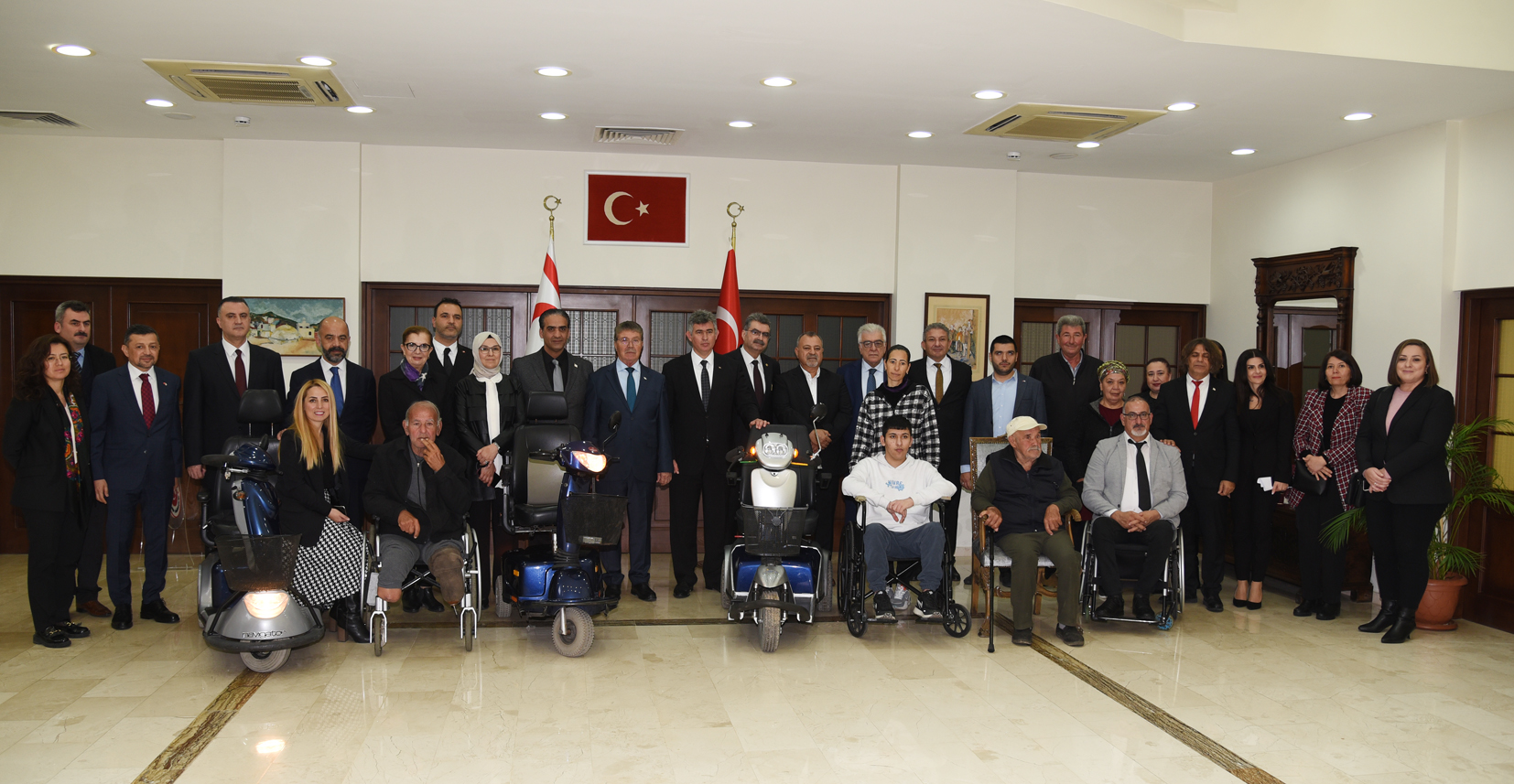 Türkiye – KKTC Parlamentolar Arası Dostluk Grubu Başkanı Orhan Erdem, Türkiye Cumhuriyeti Akşehir Kaymakamlığı Umut Engelliler Sosyal Yardımlaşma ve Dayanışma Derneği’nin işbirliği, Beçika’da ikamet eden Mehmet Baykondu’nun katkısıyla temin edilen tekerlekli sandalyeler, Türkiye’nin Lefkoşa Büyükelçiliği ile Çalışma ve Sosyal Güvenlik Bakanlığının organizasyonu ile dağıtılıyor.