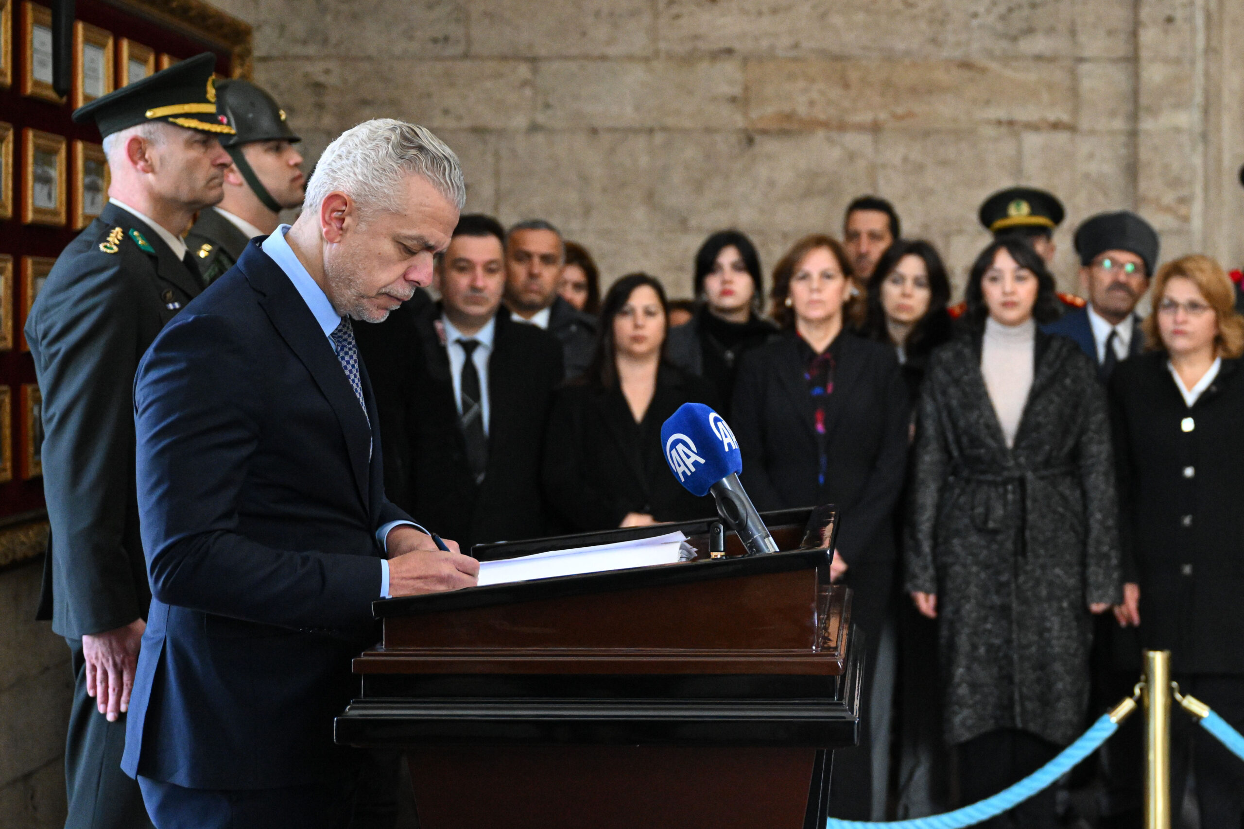 Beraberindeki heyetle Aslanlı Yol’dan yürüyerek Gazi Mustafa Kemal Atatürk’ün mozolesine gelen Korukoğlu, çelenk bırakarak saygı duruşunda bulundu.