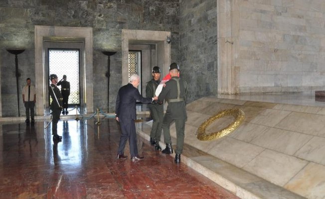 Beraberindeki heyetle Aslanlı Yol’dan yürüyerek Gazi Mustafa Kemal Atatürk’ün mozolesine gelen Korukoğlu, buraya çelenk bırakıp saygı duruşunda bulundu.