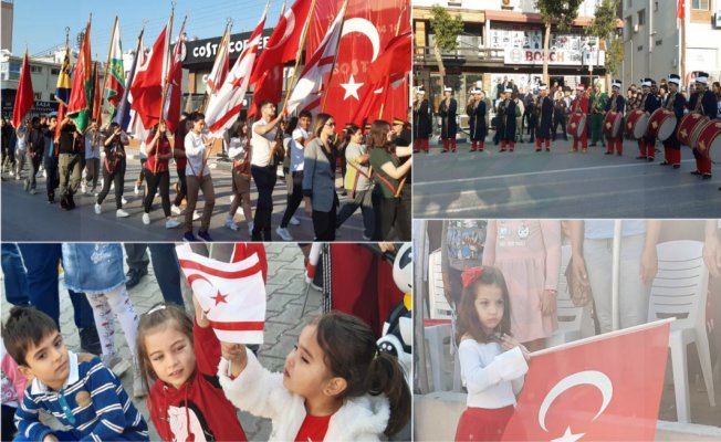 Gazimağusa’daki ilk törende Zafer Anıtı’na protokol sırasına göre çelenkler konuldu. Gazimağusa’daki ikinci tören İsmet İnönü Bulvarı’nda saygı duruşu eşliğinde İstiklal Marşı’nın okunmasıyla başladı ve protokolün halkın ve birliklerin bayramını kutlamasıyla devam etti.