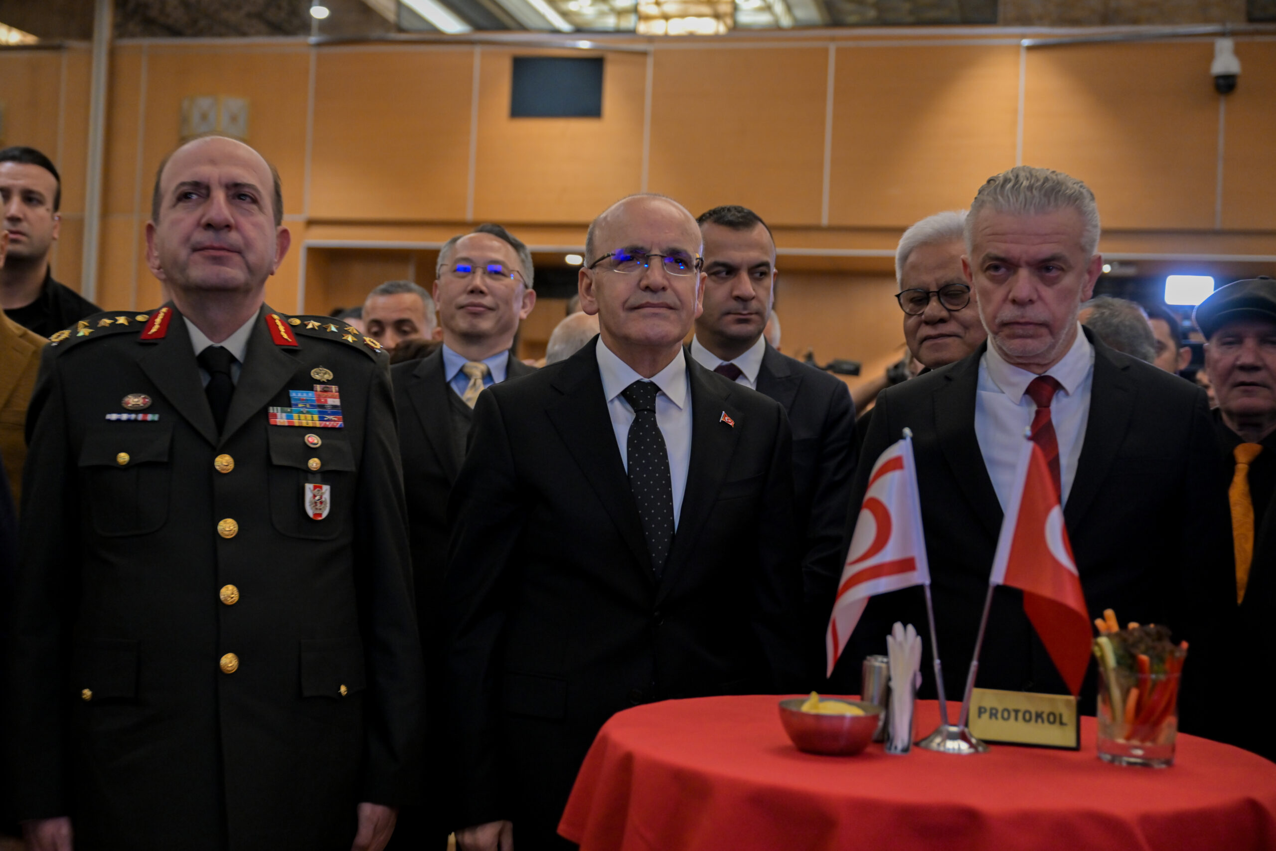 Resepsiyon, şehitlere saygı duruşu ve İstiklal Marşı ile başladı.
