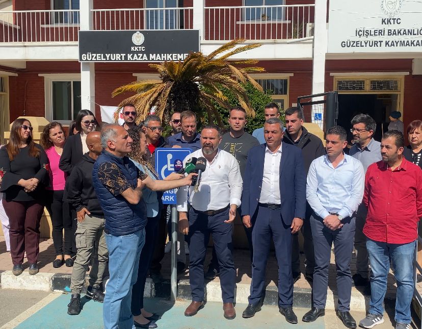 İki sendika konuyla ilgili Güzelyurt Kaza Mahkemesi önünde basın açıklaması yaptı.