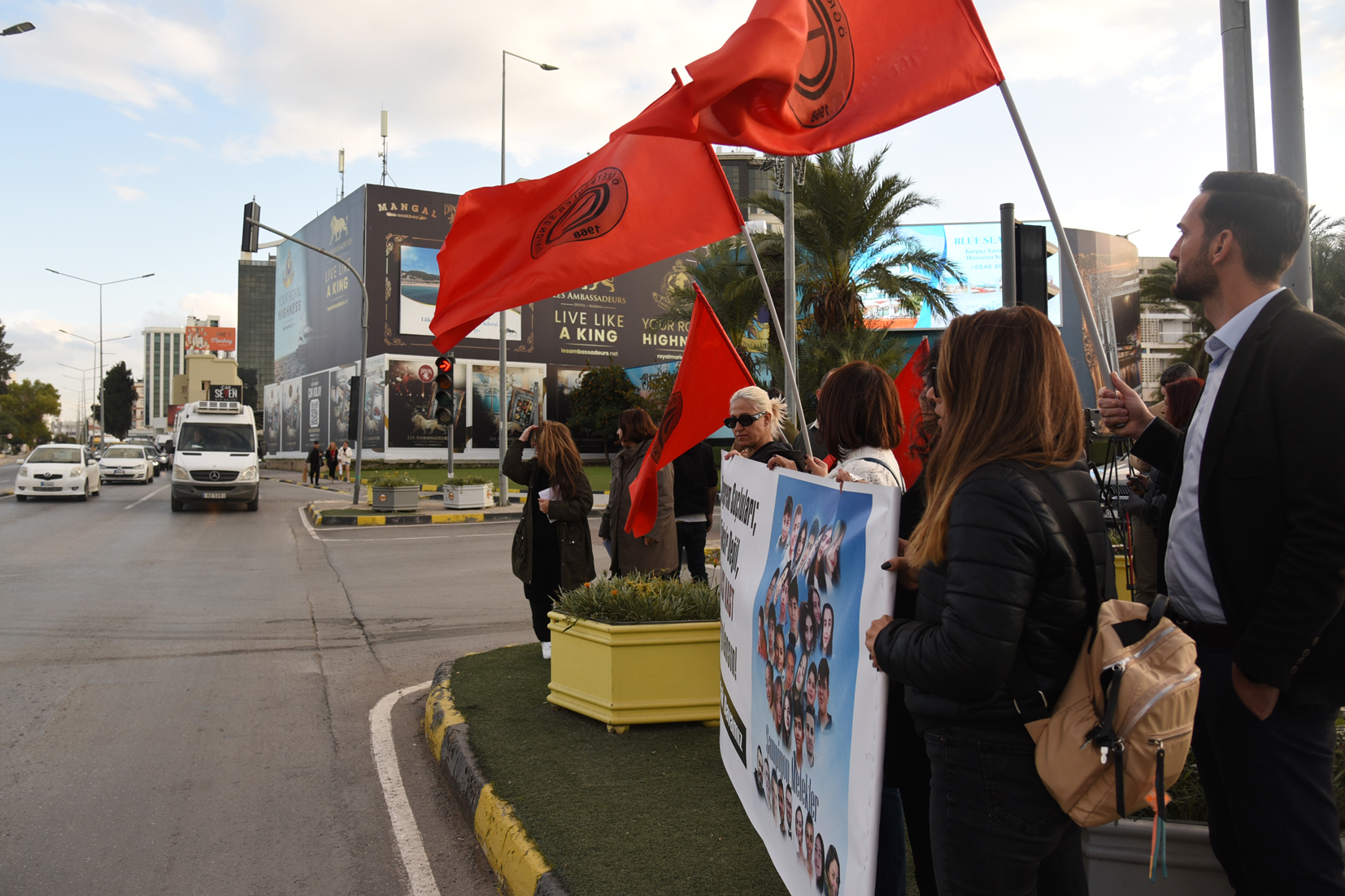 Kıbrıs Türk Orta Eğitim Öğretmenler Sendikası (KTOEÖS) İsias sanıklarının olası kastla yargılanması talebiyle Başbakanlık ışıklarında eylem yaptı, eylemciler “Deprem suçluları taksir değil, olası kast ile yargılansın” yazılı pankart açtı.