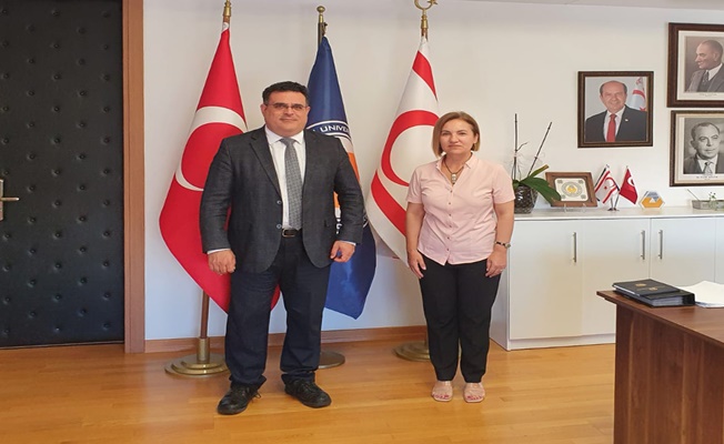 Kuzey Kıbrıs Türk Cumhuriyeti (KKTC) Başbakan Yardımcılığı, Turizm, Kültür, Gençlik ve Çevre Bakanlığı’na bağlı Kültür Dairesi Müdürü Şirin Zaimağaoğlu, Doğu Akdeniz Üniversitesi (DAÜ) Rektörü Prof. Dr. Aykut Hocanın’ı makamında ziyaret etti.