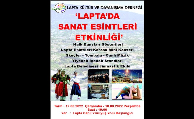 Lapta Sahil Yürüyüş Yolu başlangıcında saat 19.00’da başlayacak etkinlikte, halk dansları gösterileri, Lapta Esintileri Korosu’nun mini konseri ve skeçler gibi etkinlikler yer alacak.