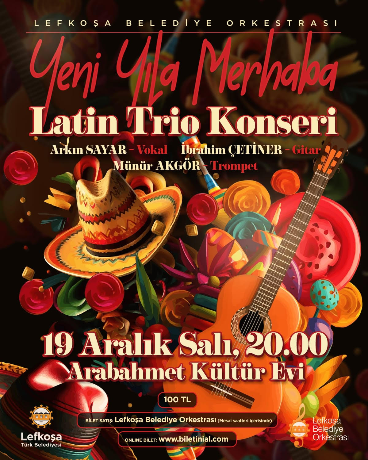 Lefkoşa Belediye Orkestrası bünyesindeki Latin Trio tarafından verilecek konser, 19 Aralık Salı günü, saat 20.00’de Arabahmet Kültür Evi’nde yer alacak.