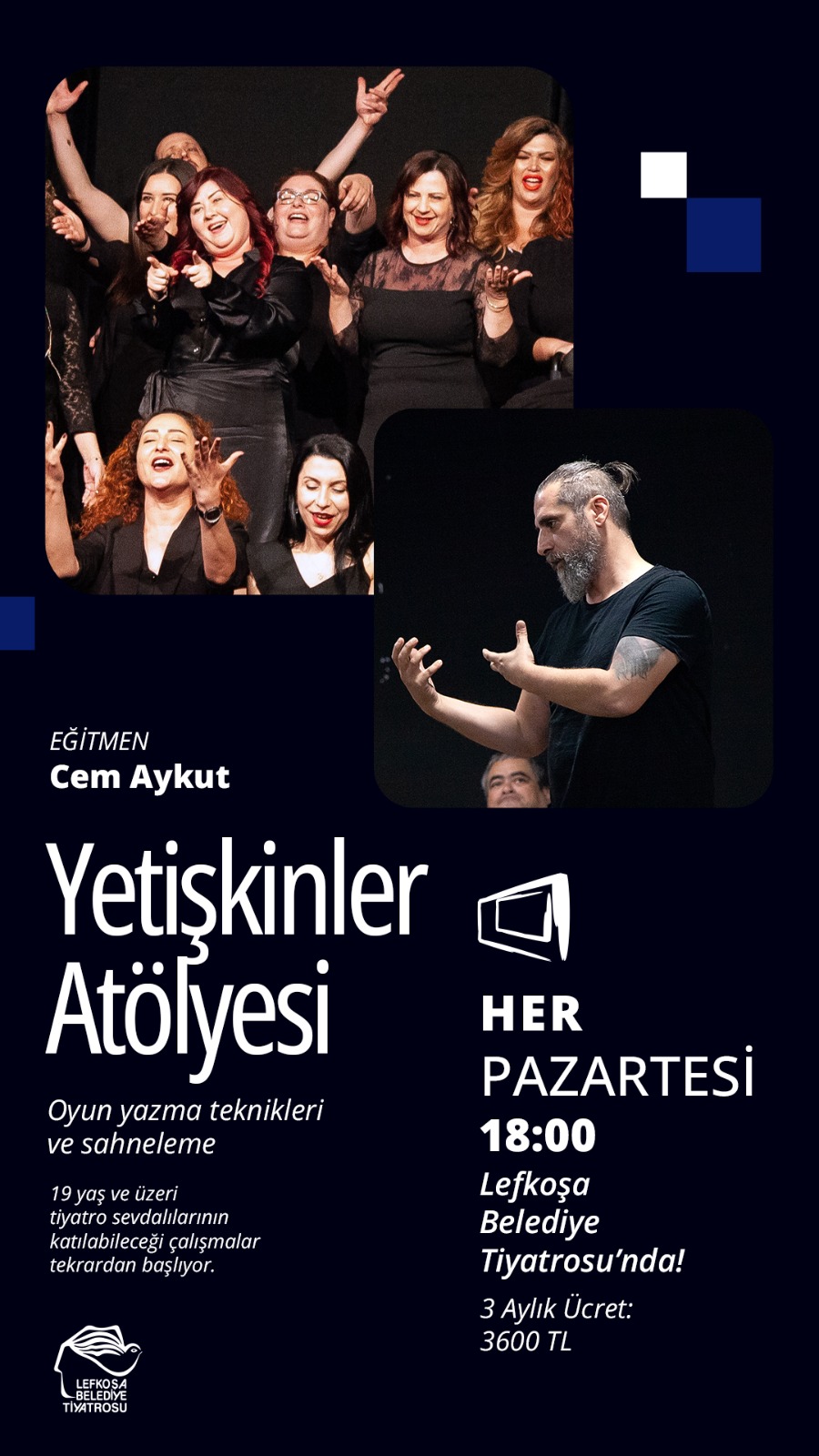 Lefkoşa Belediye Tiyatrosu’nun Yetişkinler Atölyesi’nden yapılan yazılı açıklamaya göre, Cem Aykut eğitmenliğinde gerçekleşecek çalışmalar, “oyun yazma teknikleri ve sahneleme” içeriğiyle sürecek.