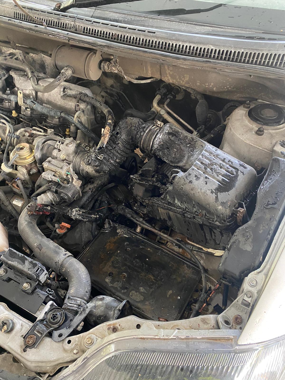 Polis Basın Subaylığından yapılan açıklamaya göre, yangın bölge sakinleri tarafından söndürüldü. Yangın sonucu aracın motor bölümündeki aküsü, hava filtresi ve plastik aksamları yanarak zarar görürken, çıkan ısıdan dolayı ön kaputu zarar gördü.