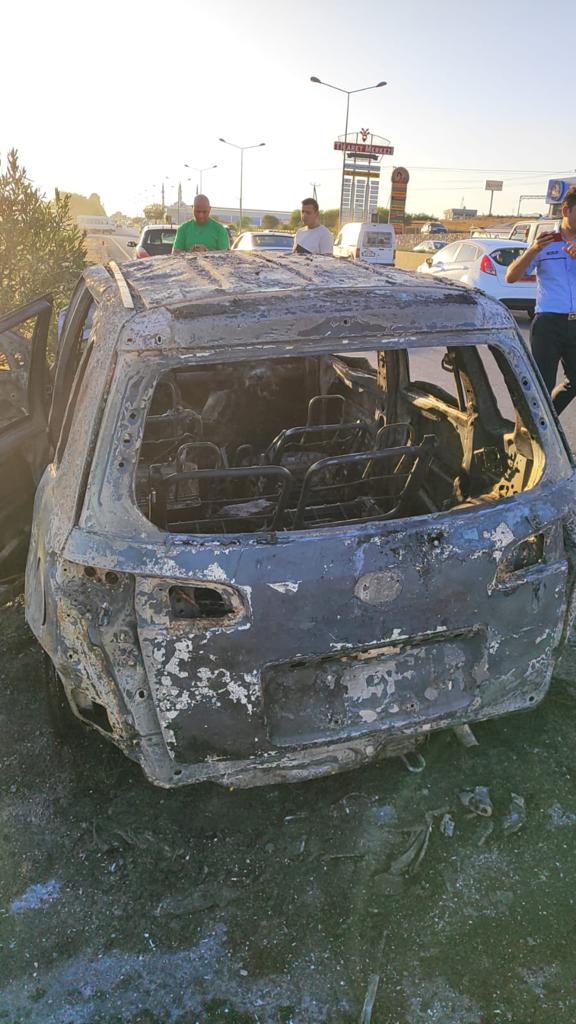 Polis açıklamasında, söz konusu aracın tamamen yandığı belirtildi.