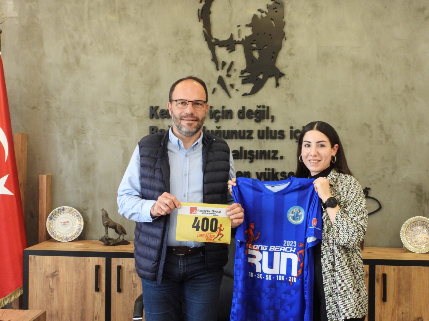 Heyet ziyarette, 16 Nisan’da Şampiyon Melekler anısına yapılacak Long Beach Koşusu ile ilgili detayları Sadıkoğlu ile paylaştı.