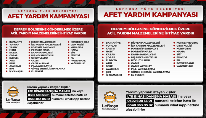 Lefkoşa Türk Belediyesi (LTB), Kahramanmaraş ve çevre illeri ile Lefkoşa olarak dayanışma ve yardımlaşma içerisinde olduklarını vurguladı.