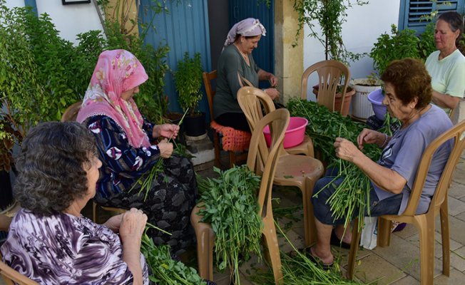 Başkent Lefkoşa’da tarihi Samanbahçe evleri bölgesinde bir araya gelen komşular, hem molehiya ayıklıyor hem de sohbet ediyor.