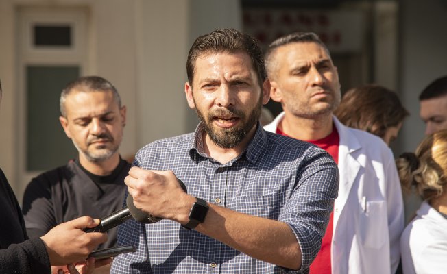 Lefkoşa Dr. Burhan Nalbantoğlu Devlet Hastanesi Acil Servisi önünde düzenlenen basın toplantısında, Tıp-İş Başkanı Mustafa Taşçıoğlu ve KTHES Başkanı İbrahim Özgöçmen konuştu.