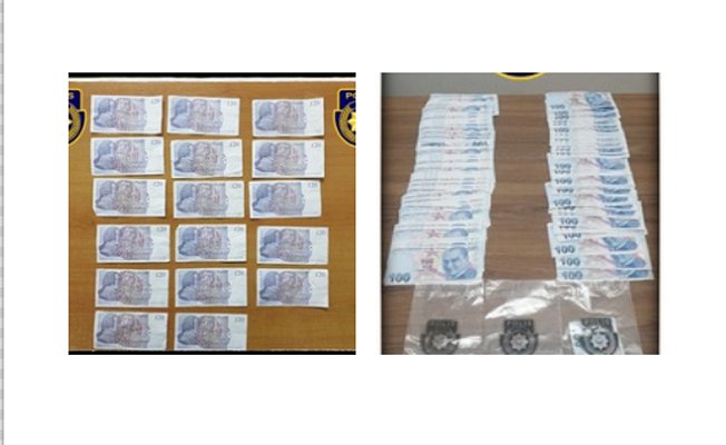 Polis Basın Subaylığı’ndan yapılan açıklamada, Lefkoşa ve Girne’de 26-27 Şubat tarihlerinde dört farklı iş yerine müşteri olarak giden üç şahıs, yapmış oldukları alışveriş karşılığında, tasarruflarında bulundurdukları 20’lik banknotlardan oluşan ve sahte olduğuna inanılan toplam 600 Sterlin banknotu tedavüle sürdüklerinin tespit edildiği bildirildi.