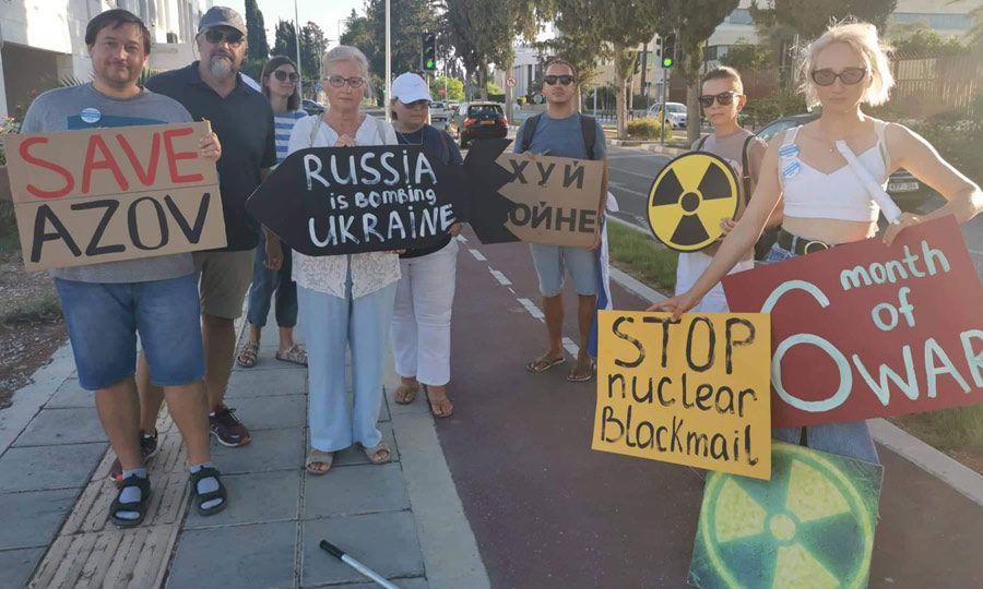 Haravgi gazetesi, eylemcilerin üzerinde “6 Aydır Savaş”, “Rusya Ukrayna’yı bombalıyor”, “Azov Taburu’nu Kurtarın” ve “Nükleer Şantajı Durdurun” yazılı pankartlarla birlikte savaş karşıtı sloganlar attıklarını yazdı.