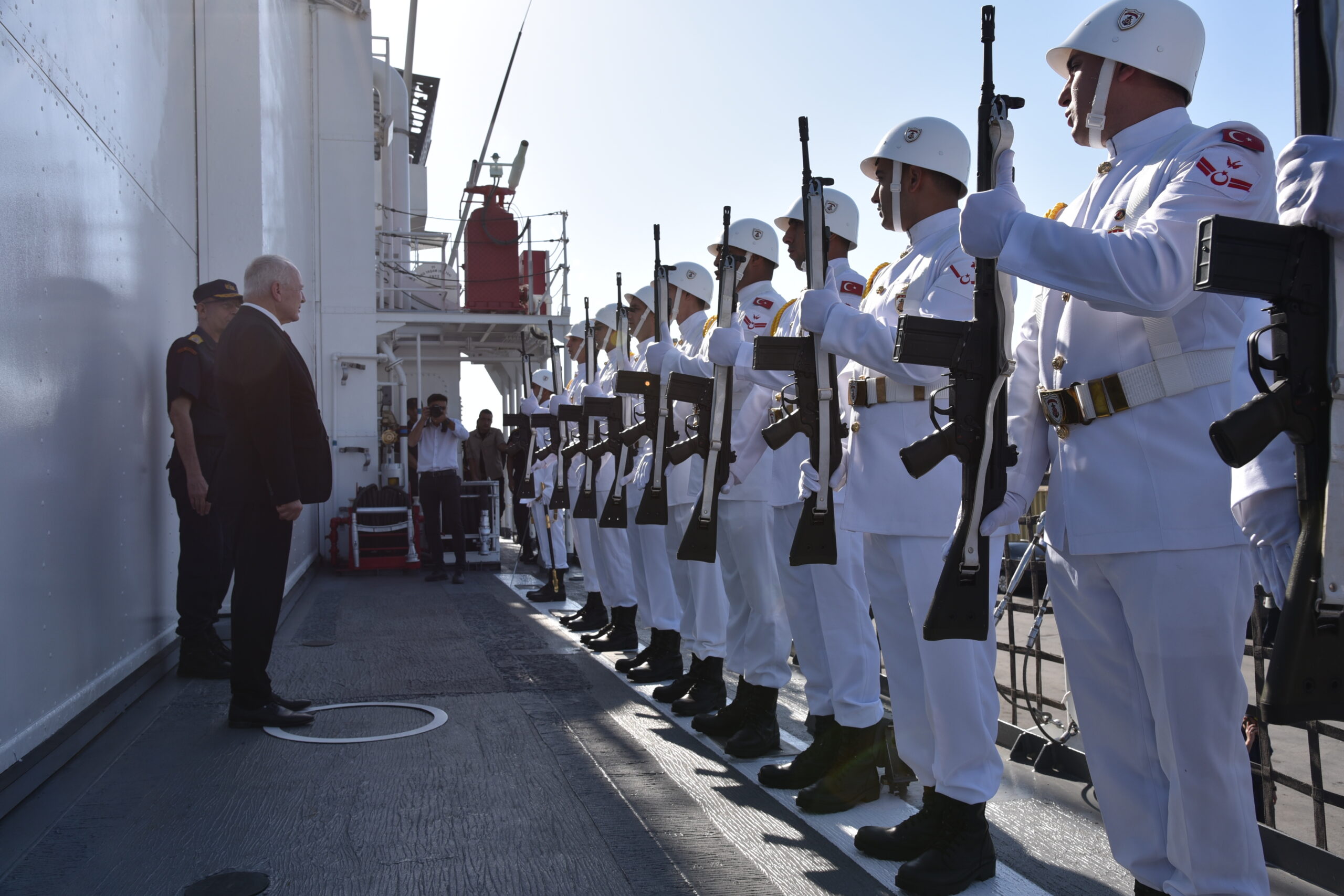 TC Sahil Güvenlik Komutanı Oramiral Ahmet Kendir’in komutanlığında icra edilen tatbikatı Meclis Başkanı ve Cumhurbaşkanı Vekili Zorlu Töre, KTBK Komutanı Tümgeneral Sebahattin Kılınç, Güvenlik Kuvvetleri Komutanı Tümgeneral Osman Aytaç, Dışişleri Bakanı Tahsin Ertuğruloğlu ile Türkiye İçişleri Bakanı Bakan Yardımcısı Mehmet Sağlam, Caner Gönyeli’nin kardeşi ve basın mensupları tatbikatı TCSG Yaşam isimli korvetten takip ediyor.