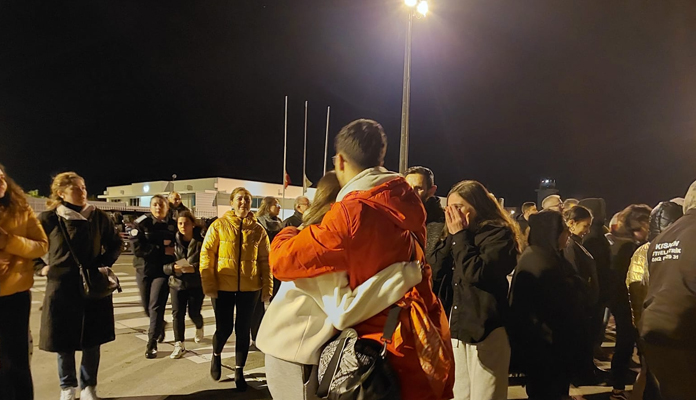 13 öğrenci, 1 öğretmen ve 1 idareciden oluşan Namık Kemal Lisesi Genç Erkek Voleybol Takımı ile 14 öğrenci, 1 öğretmen ve 1 idareciden oluşan Gazimağusa Türk Maarif Koleji Genç Kız Voleybol takımı öğrencileri, Ercan Havaalanı’na gelişlerinde aileleri tarafından gözyaşlarıyla ve alkışlarla karşılandı.