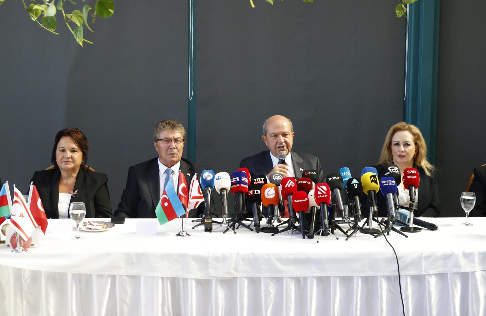 Kıbrıs’taki yeni siyaseti Azerbaycan Cumhurbaşkanı Aliyev ile değerlendirme fırsatı bulduklarını dile getiren Tatar, Kıbrıs’ta çok mücadeleler verdiklerini kaydederek, Kıbrıs tarihi hakkında bilgi verdi. Tatar, Kıbrıs Türk halkına baskı ve zulüm yapıldığını anlatarak, Kıbrıs Türklerinin farklı ülkelere göç ettiğini ifade etti.
