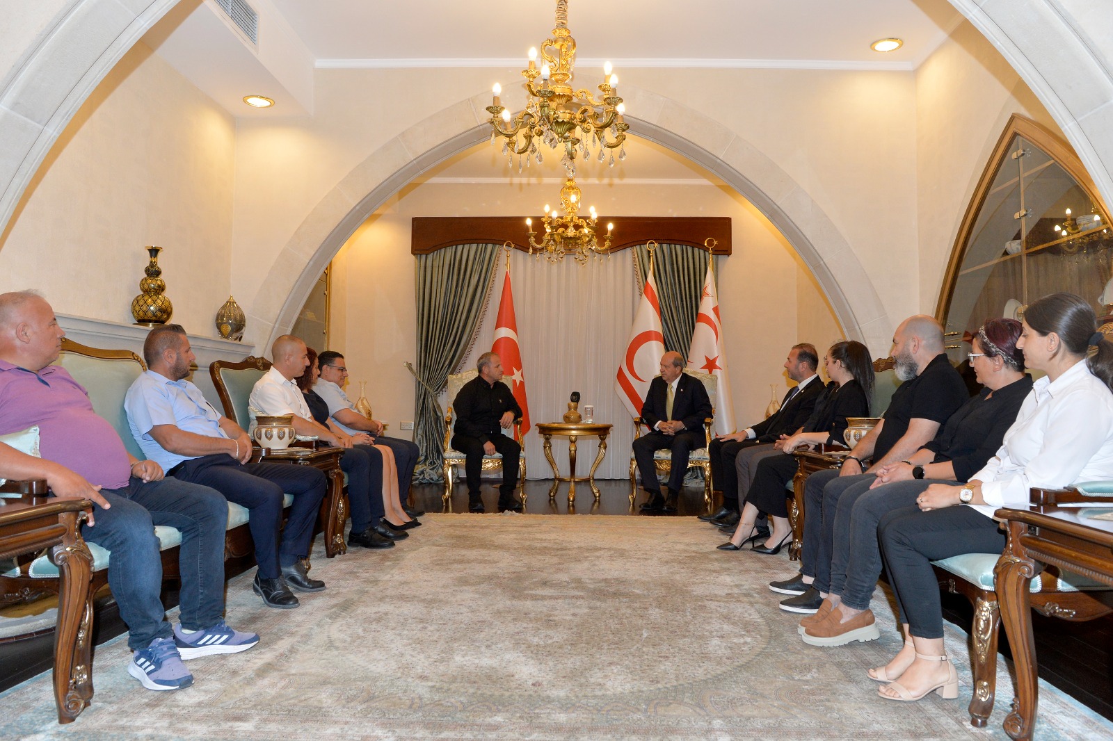Cumhurbaşkanı Ersin Tatar, Doğu Akdeniz Üniversitesi Personel Sendikası (DAÜ-Per-Sen) Başkanı Erdal Altun ve beraberindeki heyeti kabul etti.