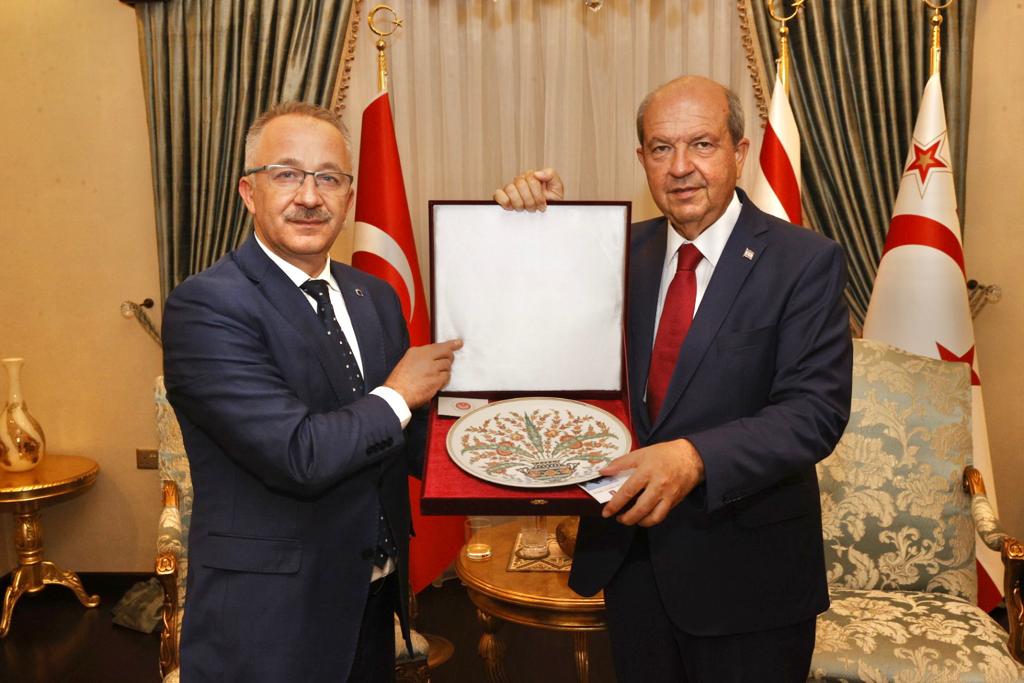 Cumhurbaşkanı Ersin Tatar, Türkiye Cumhuriyeti Cumhurbaşkanlığı Devlet Arşivleri Başkanı Prof. Dr. Uğur Ünal ve Türkiye Cumhuriyeti Cumhurbaşkanlığı Kütüphaneler Daire Başkanı Ayhan Tuğlu’yu kabul etti.
