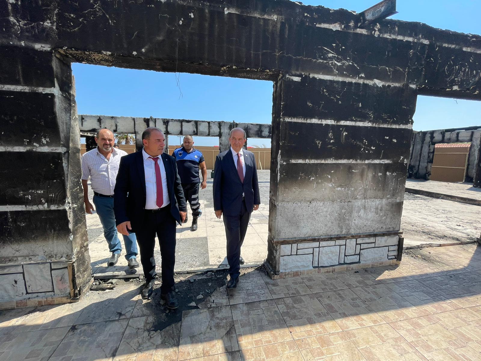 Cumhurbaşkanı Ersin Tatar, yanan Yeniboğaziçi Belediyesi’ne ait deniz kenarındaki restorandı ziyaret etti.