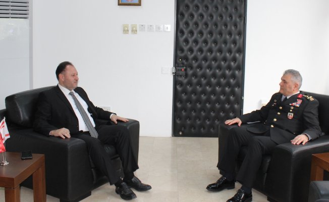 Temaslarda bulunmak üzere KKTC’ye gelen Türkiye Cumhuriyeti İçişleri Bakanlığı Jandarma Genel Komutanlığı Komutan Yardımcısı Orgeneral Ali Çardakcı, İçişleri Bakanı Ziya Öztürkler’i ziyaret etti.