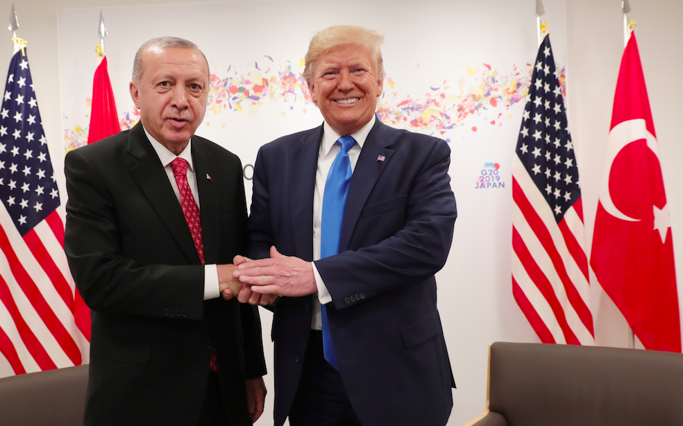 Görüşme öncesinde gazetecilerin sorularına cevap veren Trump, Türkiye’nin Rusya’dan aldığı S-400 hava savunma sistemi konusunda yaptırım getirilip getirilmeyeceği sorusunu yanıtladı, selefi Barack Obama’yı suçladı: “S-400 konusuna bakıyoruz. Farklı çözümler arıyoruz. Patriotları almasına izin vermediler, Obama yönetimi izin vermedi, insanlarla böyle iş yapamazsınız, insanlara Obama yönetiminin yaptığı gibi davranamazsınız. Bu sebeple başka füze almak zorunda kaldılar. Başka biriyle anlaşınca da ‘Tamam size satarız’ dediler. Bence Türkiye’ye adil davranılmadı.”