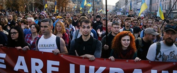 Ukrayna İçişleri Bakanlığından yapılan açıklamaya göre, başkent Kiev’deki gösteriye yaklaşık 18 bin kişi katıldı.