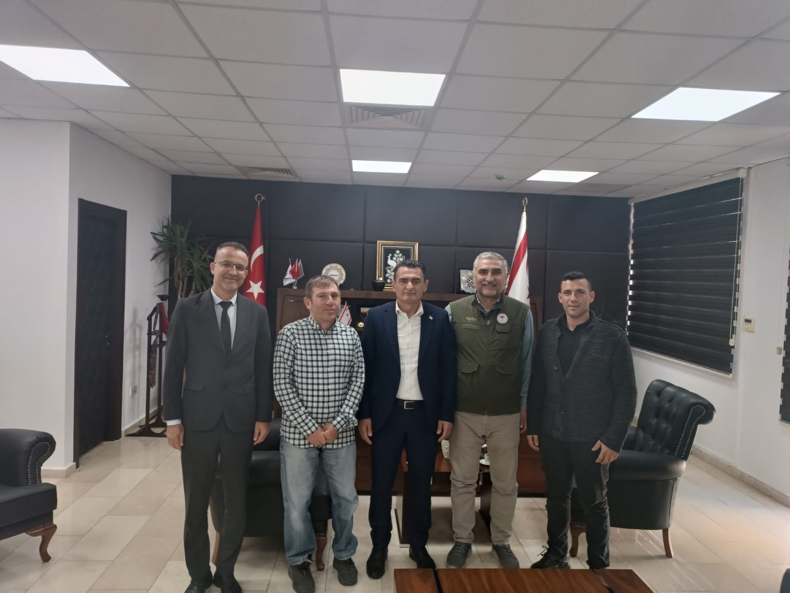 TC Tarım ve Orman Bakanlığı Tarımsal Araştırmalar ve Politikalar Genel Müdürlüğü Tarla Bitkileri Merkezi Araştırmalar Müdürlüğü’den Dr. İsmail Sayım ve Dr.Sinan Aydoğan, Tarım ve Doğal Kaynaklar Bakanlığına Bağlı Tarımsal Araştırma Enstitüsü Müdürü Cem Karaca ile birlikte Tarım ve Doğal Kaynaklar Bakanı Dursun Oğuz’u ziyaret etti.